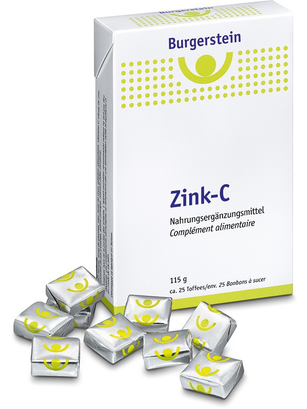 Anwendung Täglich 1 Toffee lutschen. Burgerstein Zink-C sind schmackhafte Toffees zum Lutschen mit Zink, Vitamin C und Orangenaroma. Dank lokaler Anwendung ideal für die Rachenschleimhaut. Zink und Vitamin C unterstützen unter anderem die normale Funktion des Immunsystems.